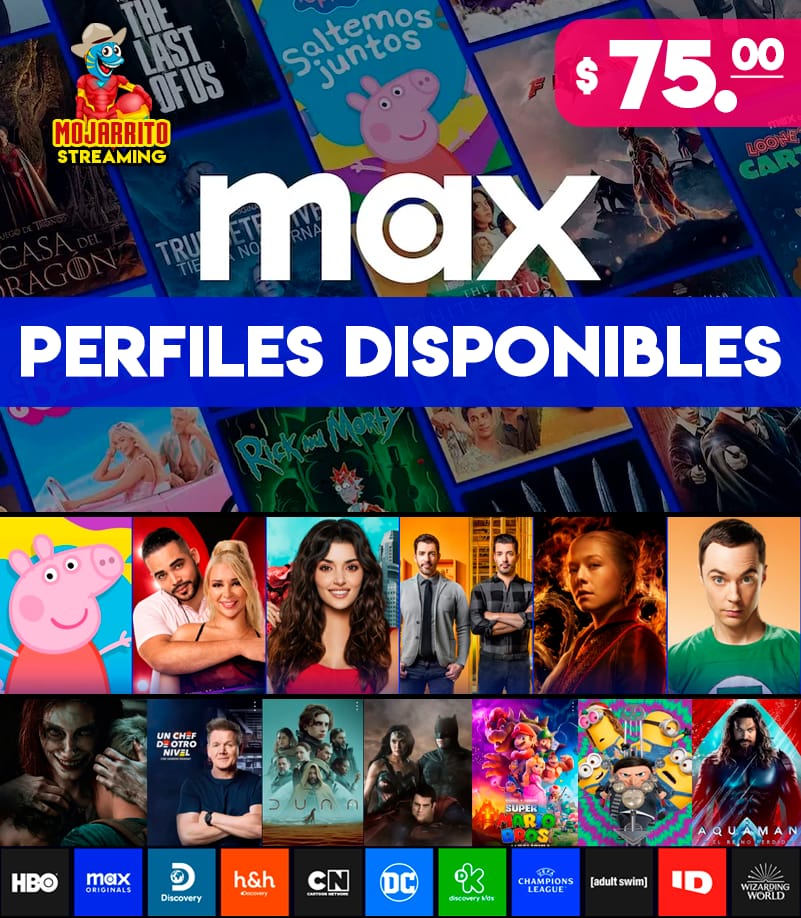 Disfruta de 1 perfil con todo el contenido de MAX en Alta definición y 4K ( series, películas, documentales, Champions League ).