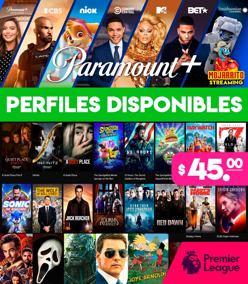Disfruta de un perfil con todo el contenido de Paramount Plus (series Paramount Originals, Show Time, Comedy Central, MTV, Nickelodeon, Nick Jr. películas y series populares) en Alta definición y 4K.