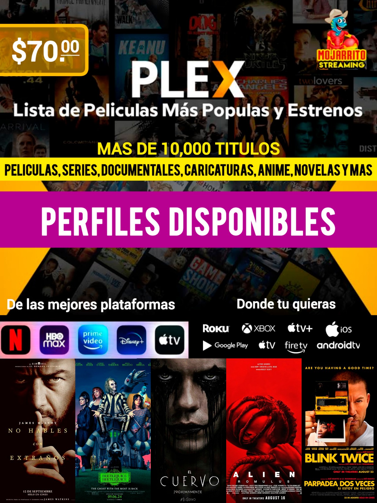 Disfruta de un catalogo de Películas y las Series más importantes de plataformas como Netflix, Disney, Max, Paramount, Apple Tv, Prime Video, etc. Ademas peliculas de estrenos.